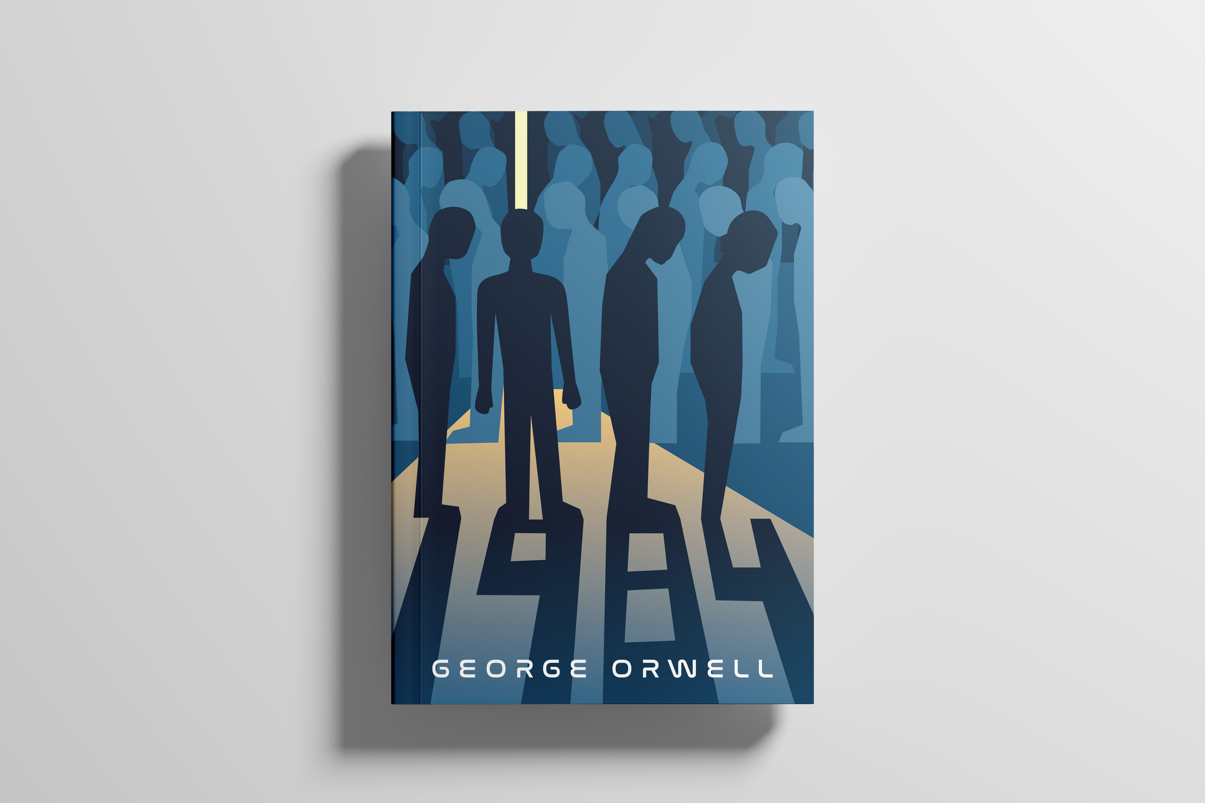 The final cover uses the concept of being “enlightened” literally. The person facing the sliver of light represents the main character and his discovery of the truth. Although the “truth” is shining before everyone, he’s the only one who sees it fully because he isn’t conforming to the line.